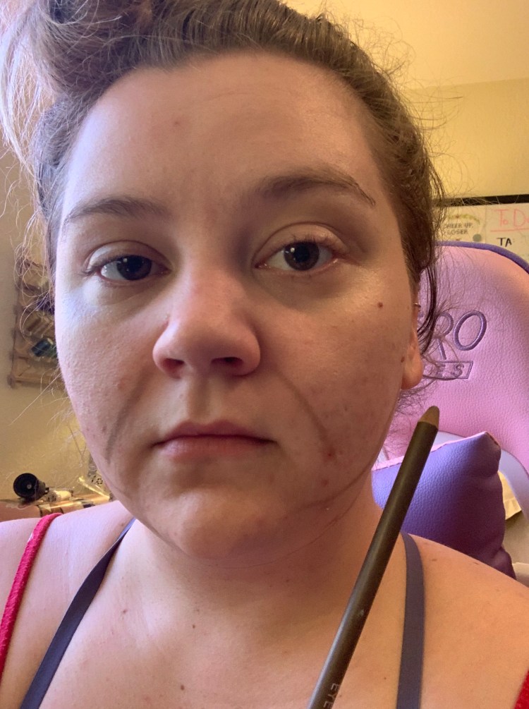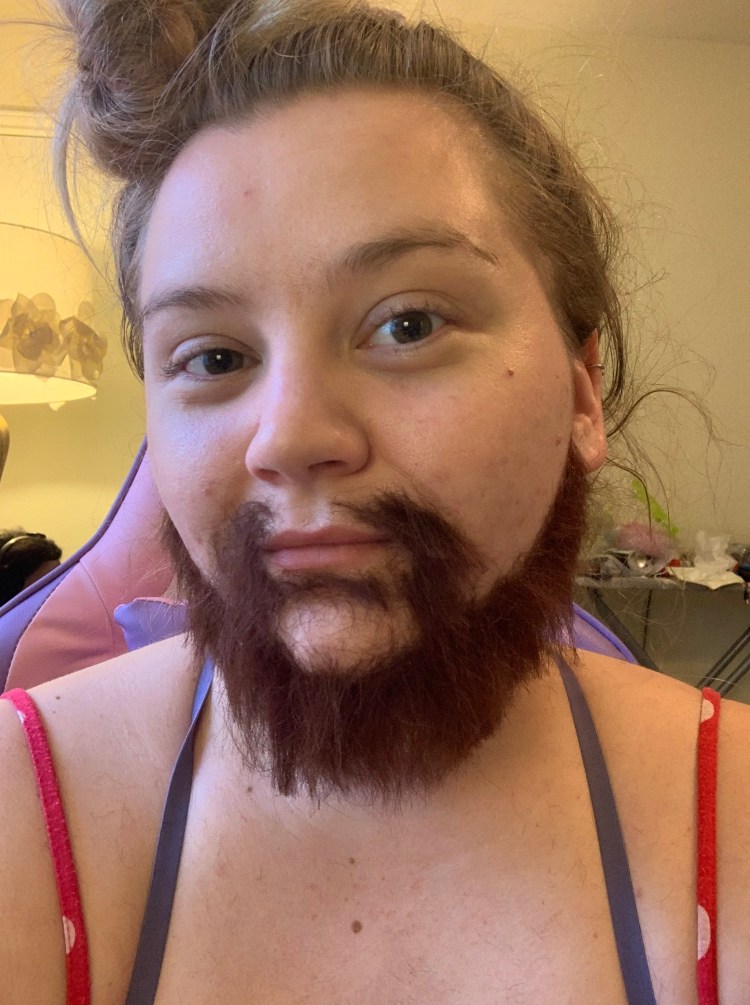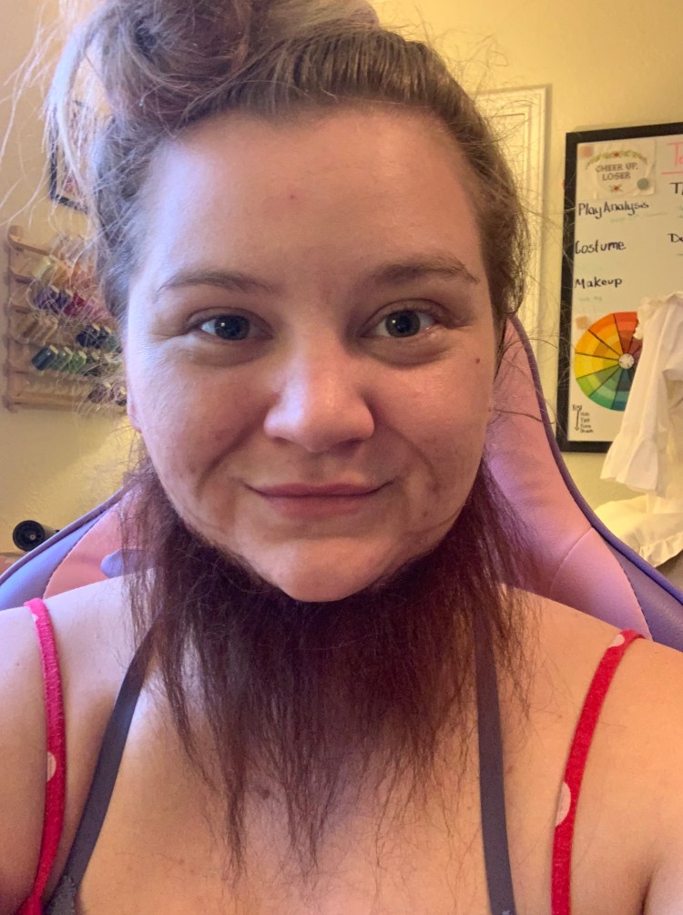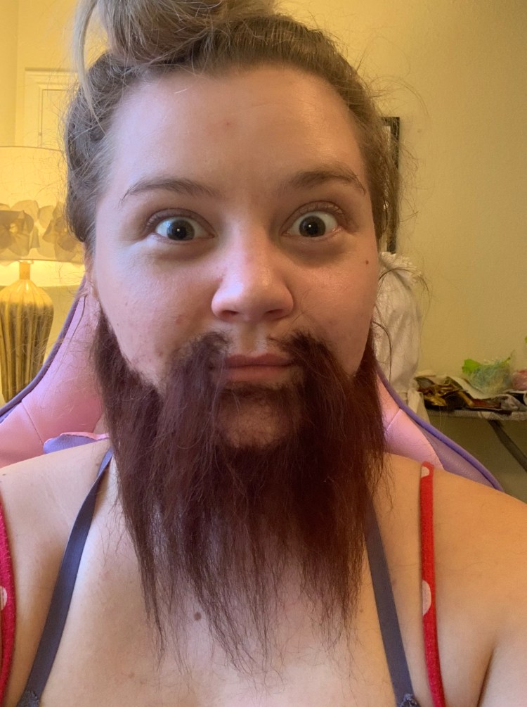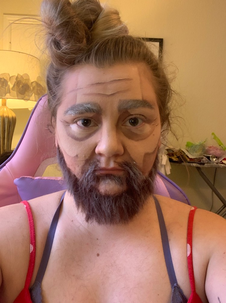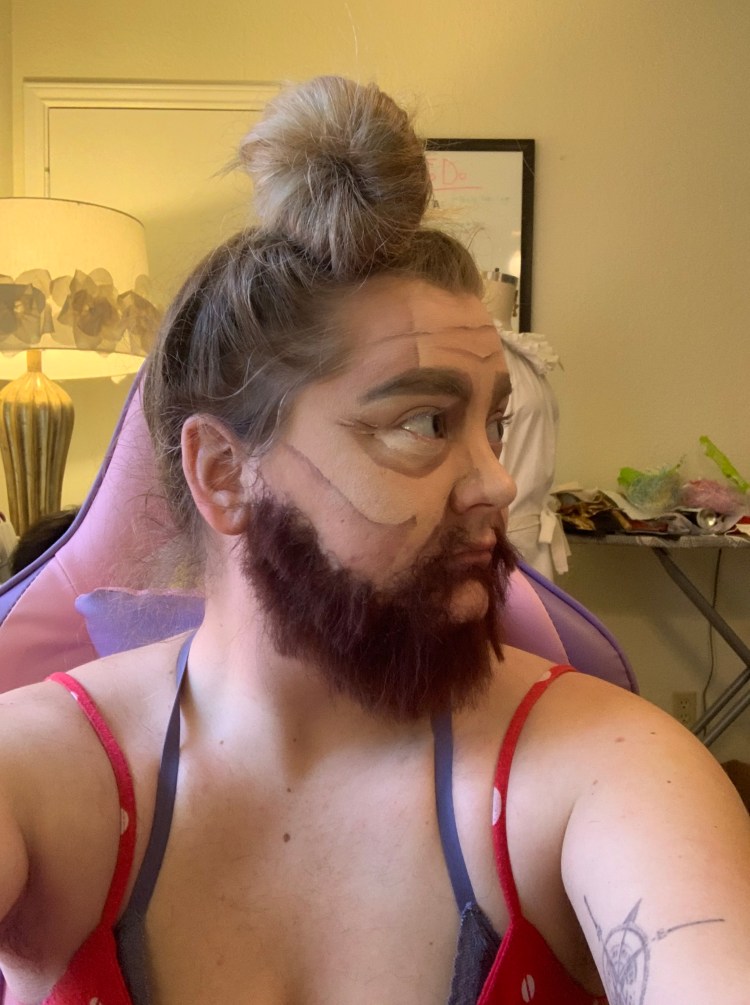 I ended up with a way thicker beard than anticipated, but decided to just go with it. I gave her a good trim and then started in on the makeup.